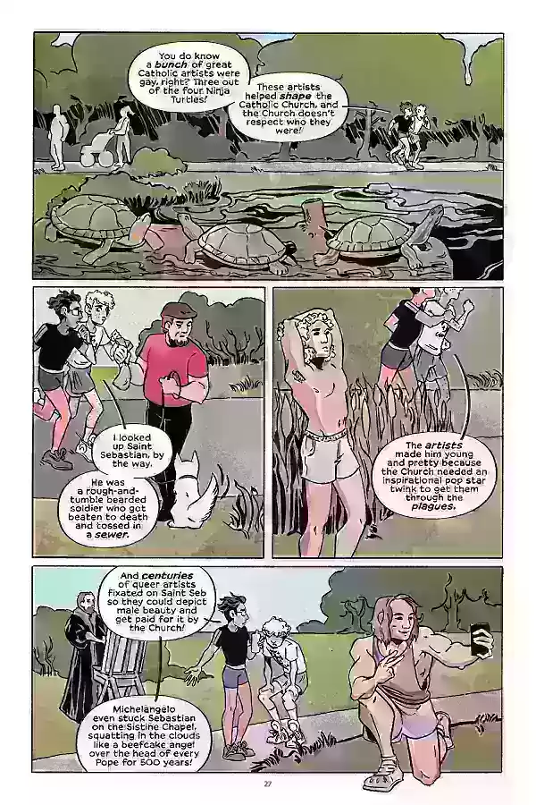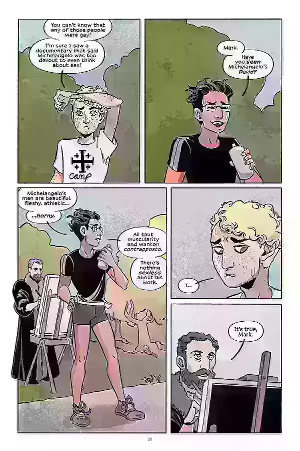 "¡Hey, Mary! profundiza en la compleja interacción entre la queeridad y el catolicismo a través de la lente de un adolescente llamado Mark", comparte Wheeler con IGN. "Para aquellos que navegan ambas identidades, la historia refleja siglos de tensión artística y cultural. Este avance muestra a Mark recibiendo una vívida lección de historia del arte de su amigo y enamorado, Luka, junto con un encuentro surrealista con una célebre figura católica queer. ¡Es atractiva, informativa y audaz!"