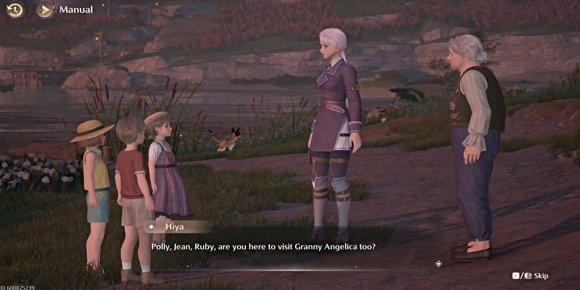 Teleport to the Dream Warehouse Tower Warp Spire for easy access to the high corridor. Talk to Granny Angelica, triggering another cutscene. Then, talk to Polly; the children apologize and reveal their "Wish Squad."