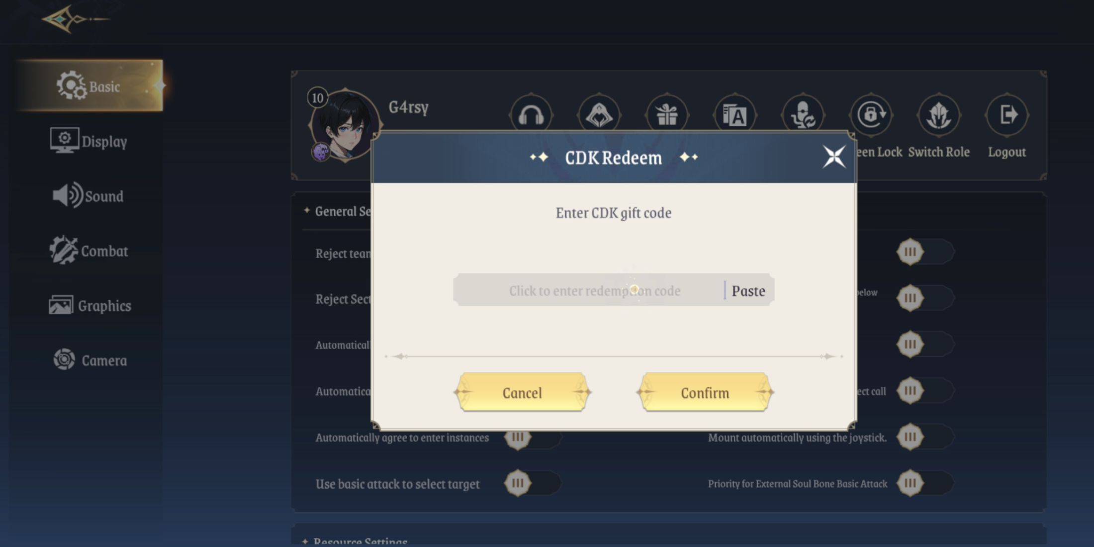 - In the Basic Settings tab, near your avatar, locate and click the "CDK Redeem" button.
