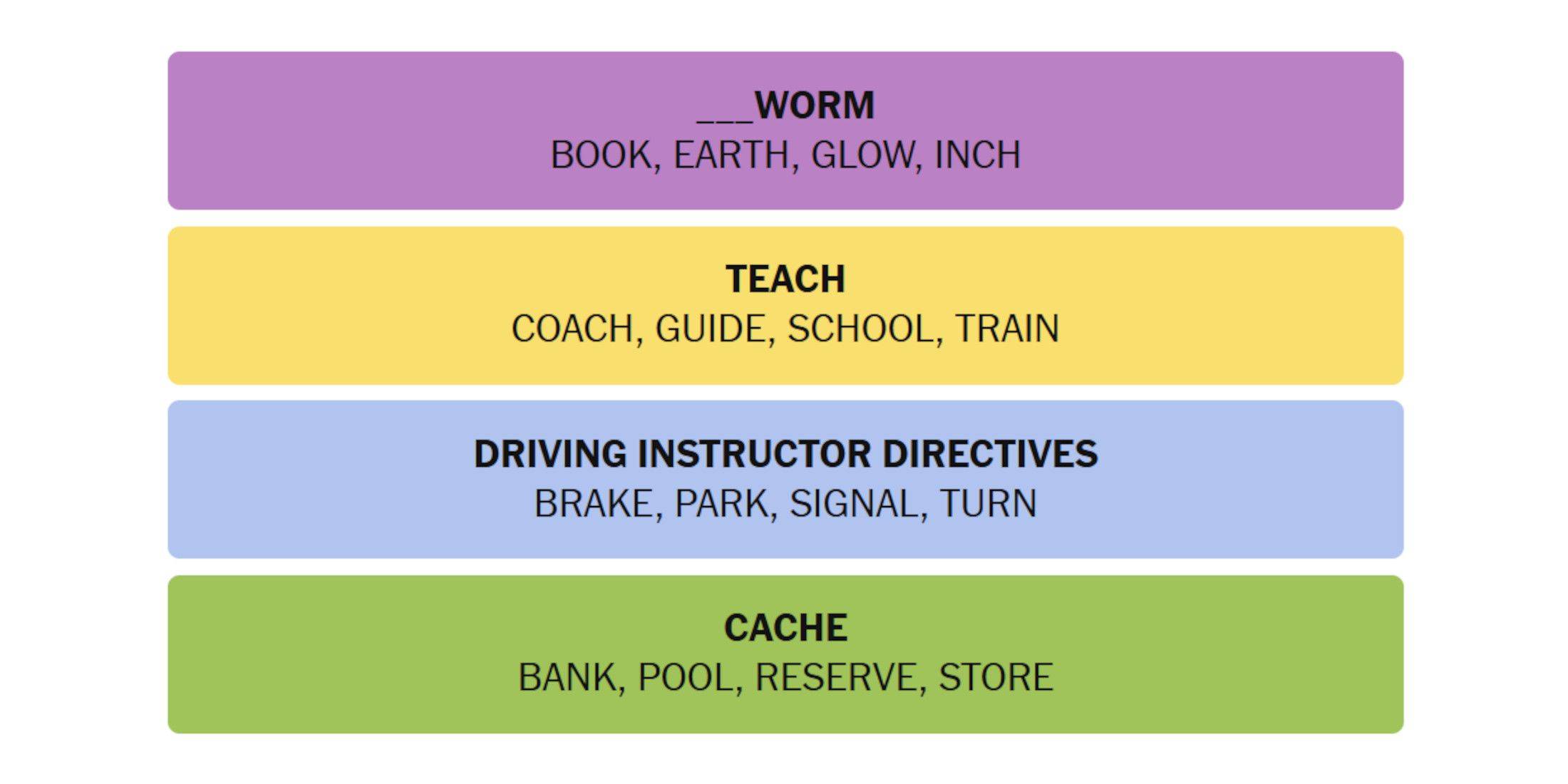 - Hints: Each word can be combined with a four-letter animal word to form a common phrase.